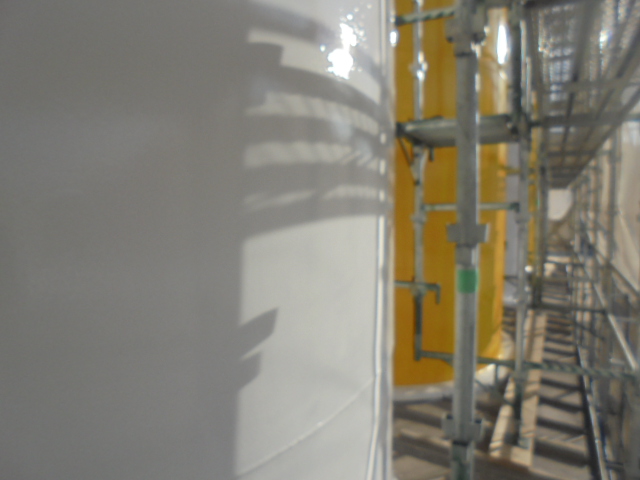今回はサイロ全面にサンダー掛けを行い、表面の錆、浮きを徹底的に排除して下地調整 を行いました![]()